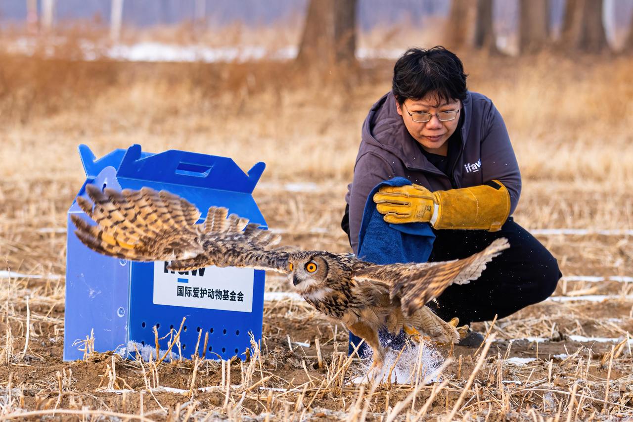 康复师张率至今记得20年前那次惊心动魄的救援。在北京昌平的一个养鸡场,一只雕鸮被认定偷吃家禽。愤怒的主人用铁钩穿透了它的腿骨,试图将它活活饿死。当张率赶到时,围观人群中甚至有人戏谑地问:“这玩意儿好吃吗?”救回雕鸮时,张率发现它肌肉坏死,经过半年多的复健才勉强站立。