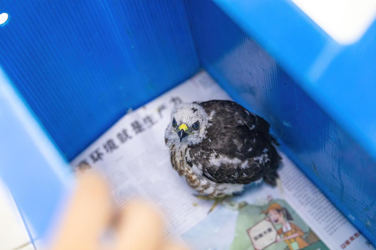 北京猛禽救助中心接收的赤腹鹰幼鸟。受访者供图