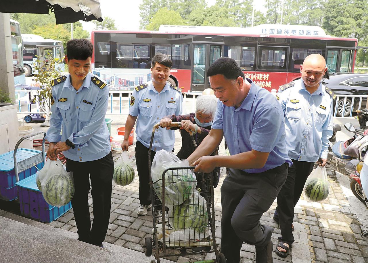 夏天时,“西瓜奶奶”送西瓜的场景。(资料图片)