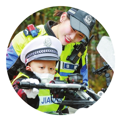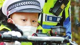 4岁的辰辰(化名)穿着特制的迷你警服,在骑警的陪伴下,第一次坐上了警用摩托车,学着做了几个交通指挥手势,小脸上写满了兴奋。
