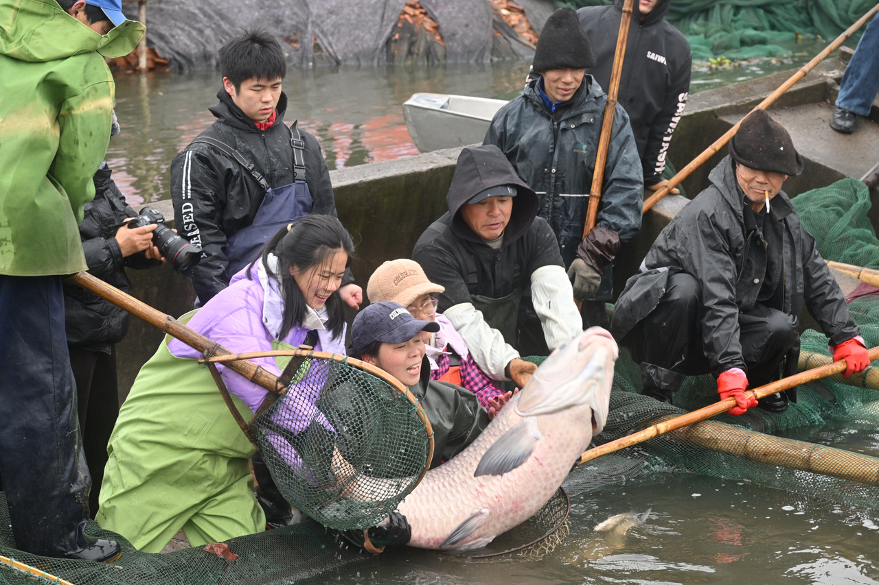 她指着满仓鲜鱼介绍,今年年鱼总产量预计可达10万斤,涵盖白条、钱塘江鲈鱼、胖头鱼、鲢鳙、鲫鱼、鳊鱼等多个品种,“每年我们从年十九、年二十开始捕,这些鱼会陆续供应给市场,端上大家的年夜饭餐桌。”