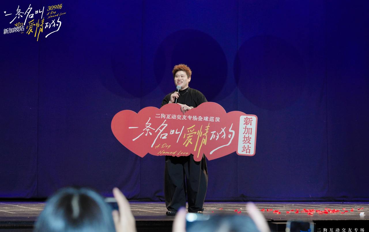 演出名为《一条名叫爱情的狗》,它绝非传统意义上的脱口秀,而是一幕喜剧,一个互动交友专场。二狗将原本演出前十几分钟的暖场环节,慢慢拉长成主线,用密集的即兴反转与猝不及防的情感碰撞,让效果直接拉满。