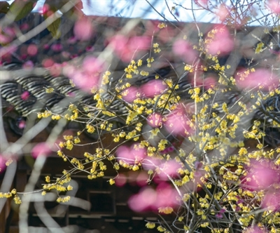 梅花季到了,杭州人都到哪里赏梅?2月9日,灵峰探梅活动在杭州植物园品梅苑正式启动。目前,植物园内还出现了罕见的蜡梅与梅花同步绽放现象。