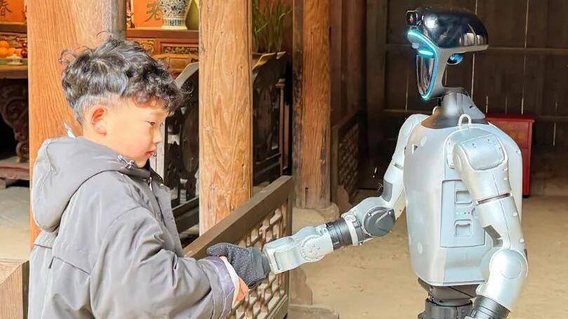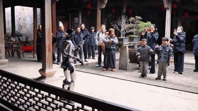 它通体银白,圆头圆脑,憨态可掬。一见到游客,就主动挥手致意;碰上小朋友,还会伸出手完成一场可爱的“握手约定”。古色古香的院落里,多了这抹灵动的科技身影,瞬间就有了“未来感”。