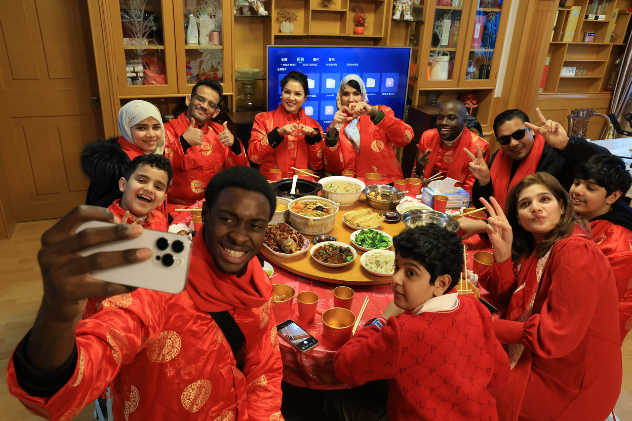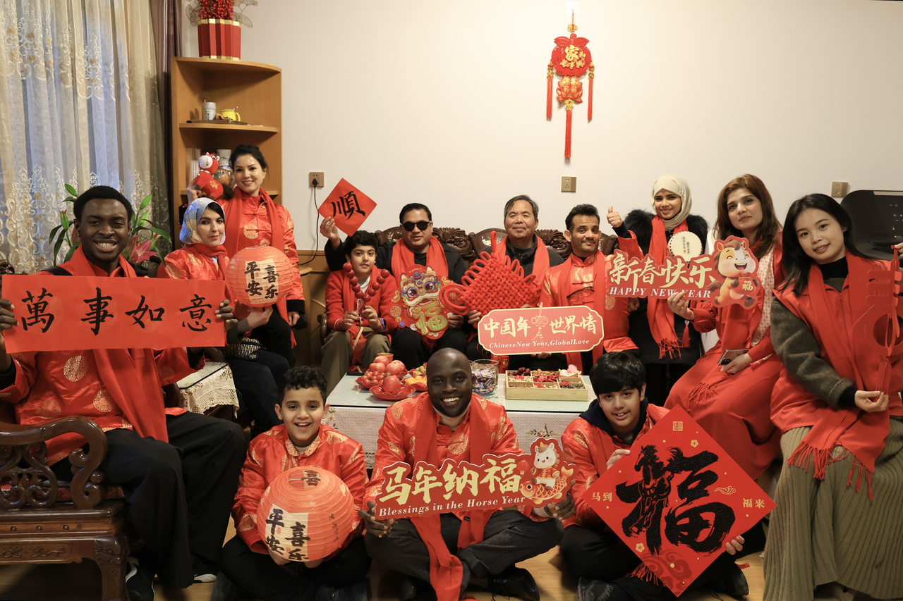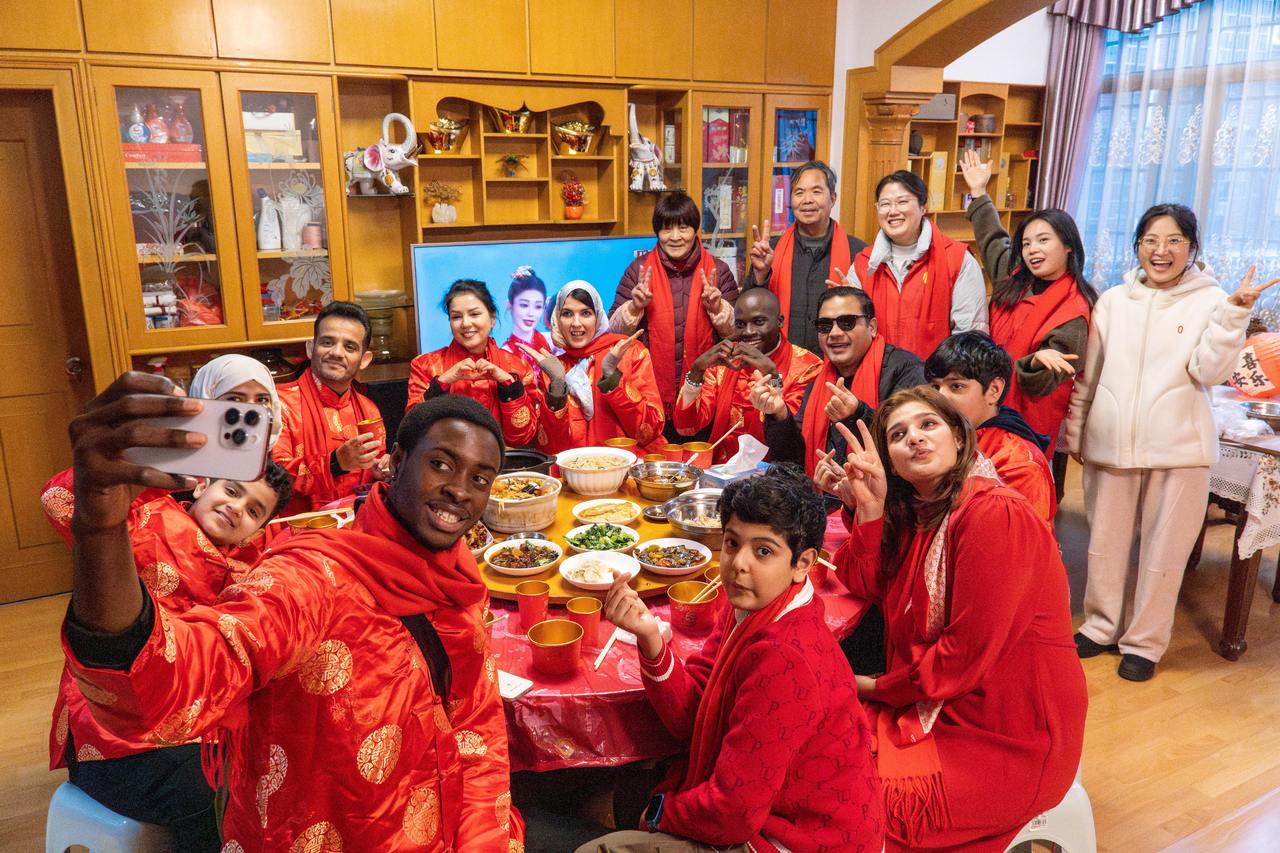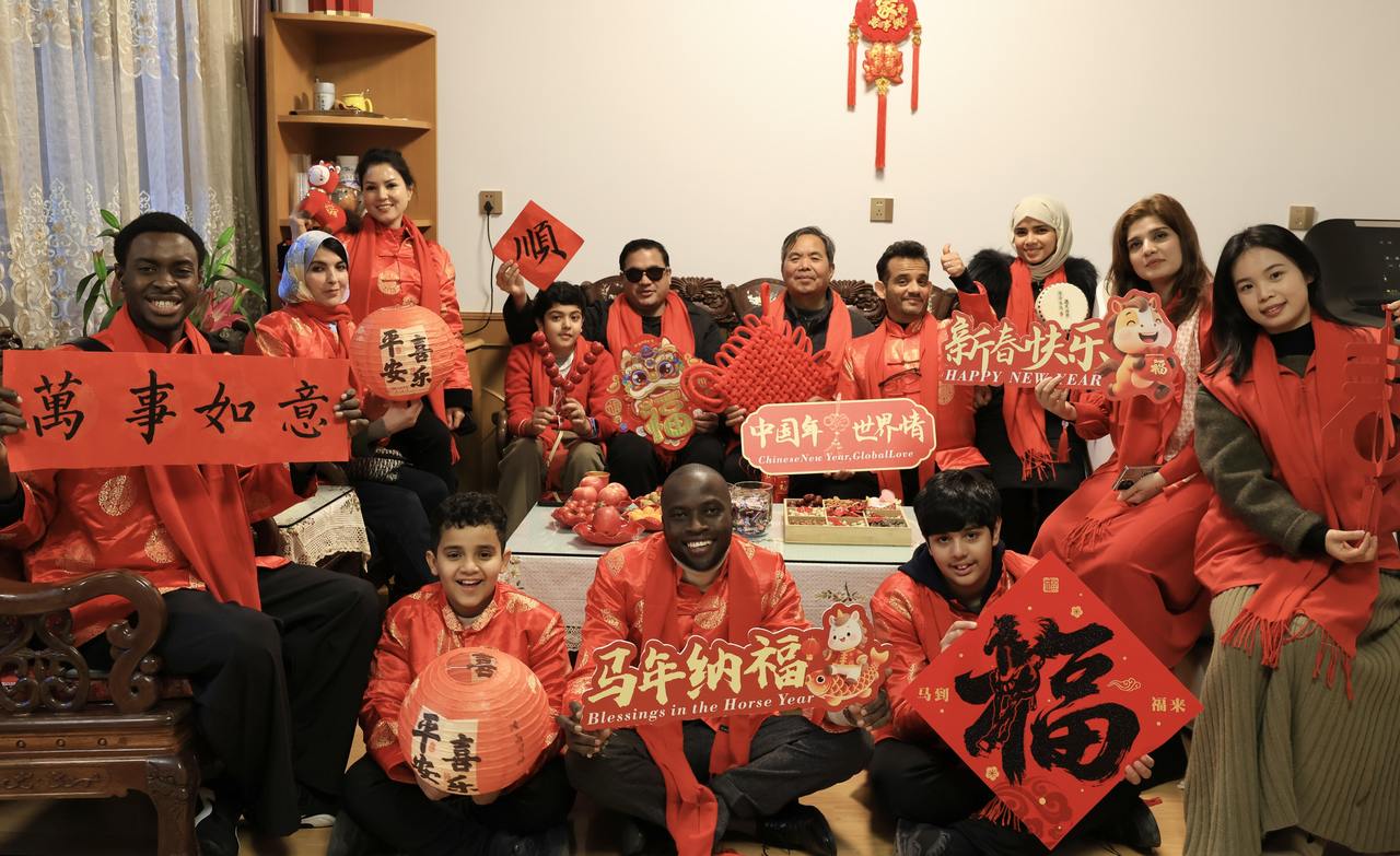临近春节,他和来自摩洛哥、肯尼亚、也门等国的十多位外籍邻居,穿着喜庆的唐装,一起到中国邻居陈金明家拜早年。大家欢聚一堂,提前吃了顿热热闹闹的年夜饭。