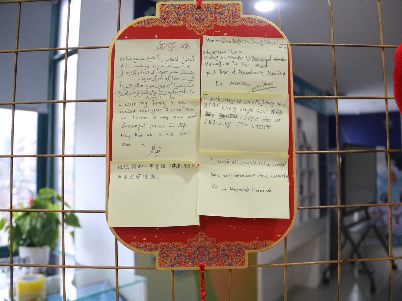 鸡鸣山社区外籍居民写下自己的新春愿望。鸡鸣山社区供图