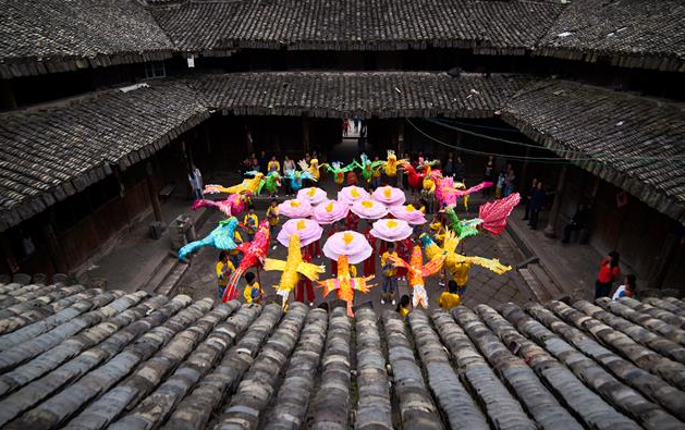 始于唐景云年间,清《青田县志》有载,舞者人手一盏鸟灯,以牡丹花灯为领,凤凰居首,通过“走阵”演绎“百鸟觉醒”“孔雀开屏”“松鹤延年”等七大主题。灯彩与鸟姿相融,山野风韵十足。