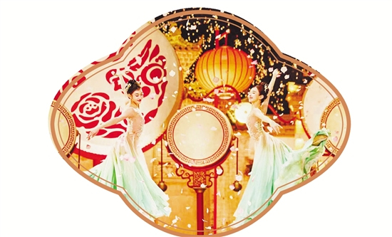 借助虚拟技术,西湖龙井的茶烟从窗中飘散,钱塘江潮在青绿色的舞美中奔涌而来,主舞台以蓝色波浪造型铺展。这些既寓意“勇立潮头”,也暗合浙江“七山二水一分田”的地貌。镜头转向西门老街。青石板上,知名舞蹈演员在拨浪鼓上翩然起舞,演绎着“凤凰于飞”的唯美。鼓面上,义乌的市花月季悄然绽放。手摇拨浪鼓的孩子们唱起古老的童谣:“金鹁鸪,银鹁鸪……”