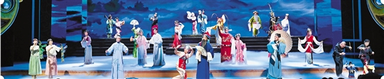 越剧《梁祝》。 例如在舟山海岛演出时,我们融入了舟山本地的海洋神话越剧节目《东海明珠》,别具一格的渔歌曲调、渔姑舞蹈,舟山海洋氛围的风土人情景象尽显于晚会之中,演出气氛非常活泼。在温州演出时,我将平阳地区的平阳提线木偶戏加入晚会的《赏心乐事》篇章,充满童趣的木偶表演使得晚会霎那间增添了不少灵动性和奇幻感。温州瓯剧、越剧以及永嘉昆曲的诸多优秀演员的加盟,又使温州站整台晚会的戏曲色彩更加多元、别致,更加璀璨。