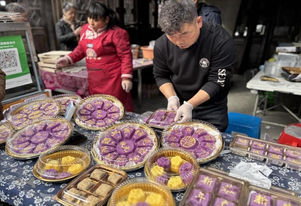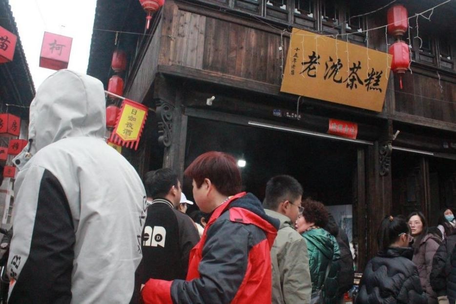 沈老板还说,去年春节,他们在商场里租了摊位,相比而言,商场里生意会更好,但是古街上更接地气。“这里不收摊位费,图个人气。来买糕点的也数老街坊比较多,因为这是大多数本地人熟悉的味道。这种熟络的人情味,是超市里扫码付款给不了的。过年嘛,不就是图个老邻居见面道声‘新年好’的热乎劲儿?”
