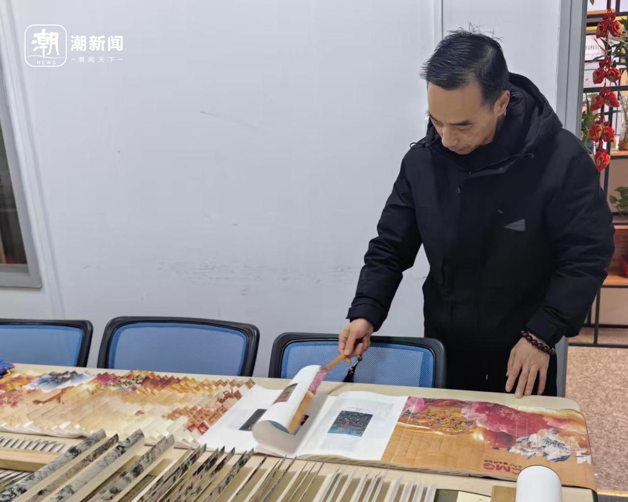 10多年来,他在传承千年古技的过程中,也试着融入更符合当下审美与潮流的元素。如今,张毅亲手制作的龙鳞装画卷不仅收藏于钱塘非遗馆、非遗里的中国陈列馆等地,也经常亮相大型文化节目。他位于钱塘区的工作室内也常有网络博主上门学习、有画家来定制龙鳞装个人作品集、有企业定制文化礼品。去年9月,他还与大型手游《龙迹之城》联名制作了龙鳞装纪念册,在千年技艺与游戏玩家之间架起了一座文化桥梁。