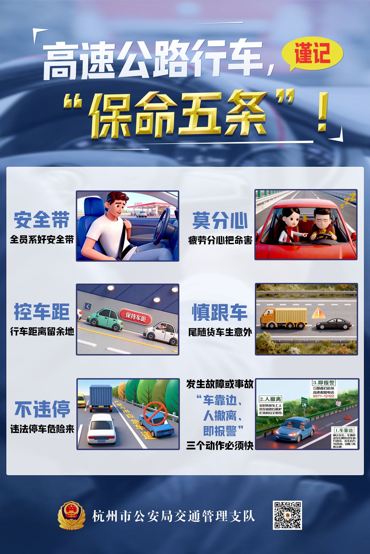 杭州公安交警提醒,行驶在高速公路上,特别是大流量缓行路段,一定要控制车速、保持车距,确保安全。出行推荐打开导航系统,使用“杭州高速安全精灵”安全提醒功能。