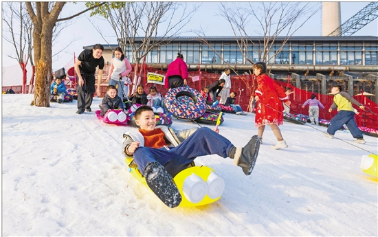 孩子们在大运河杭钢公园冰雪嘉年华玩耍。记者 曹坚 摄