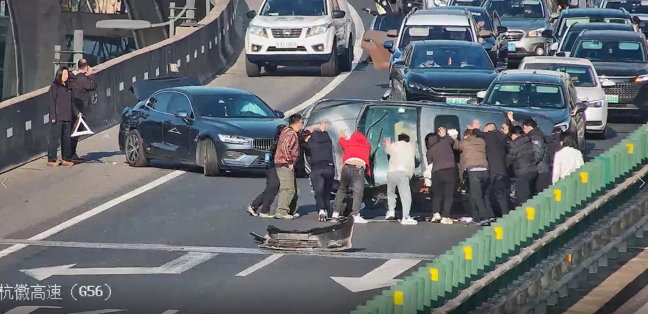 一句句真诚的请求,换来的是一个个毫不犹豫地点头。十几辆车、几十位素不相识的热心司乘人员纷纷下车,从后方汇聚而来。他们中有返程的务工人员,有带着孩子的年轻父亲,有头发花白的长者……那一刻,他们只有一个共同的名字——救援者。