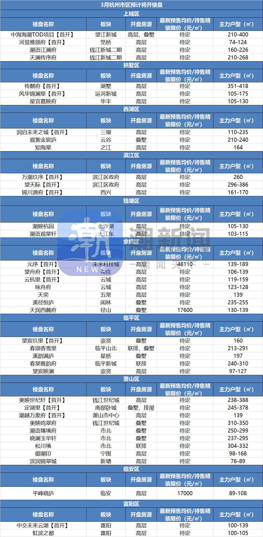 注:以上数据来源于潮新闻美好生活研究院,具体开盘信息以售楼处通知为准