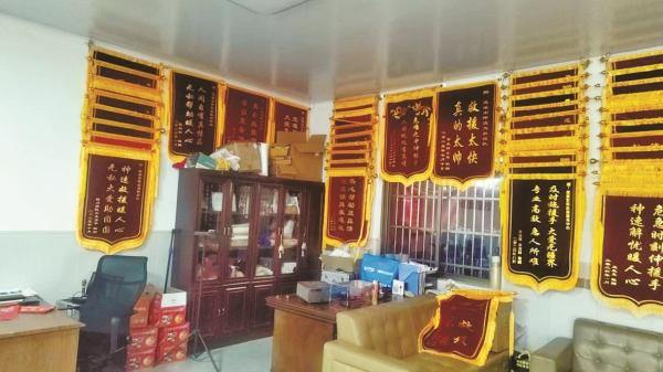 锦旗挂满了救援队的办公室。
