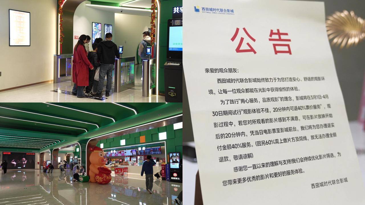 此前,关于影片开始放映后能否退票,各方争议一直较大,大多数情况下,消费者只能接受影片开场后不可退款的情况。此前,河南许昌胖东来影城就因推行“观影不满意可退票”,在全网引发广泛关注,被网友称为“最宠观众的影院”。