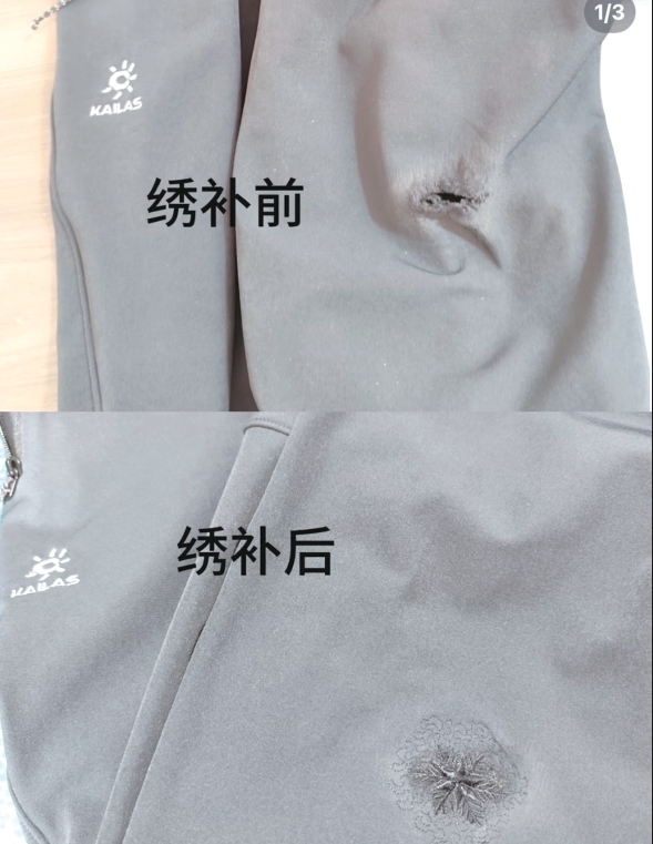 “有的顾客喜欢刺绣,点缀在衣服上很漂亮,也有的顾客喜欢无痕修复。”章大姐介绍,无痕修复就是“拆东墙补西墙”,比如从衣物隐蔽的口袋内侧剪下一块同色面料,小心缝进去,修复后几乎看不出痕迹。“简单绣补几分钟就能弄好,复杂的有时需要好几个小时。”