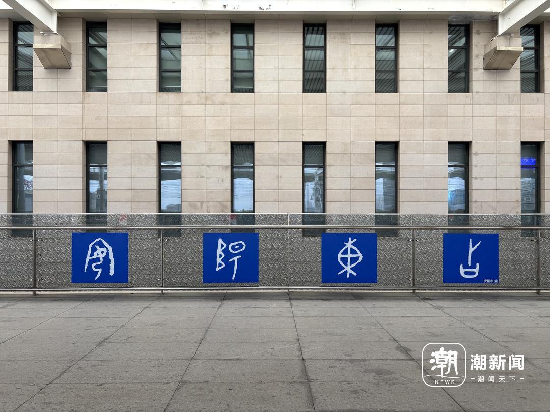 安阳东站的甲骨文字体标识“安阳东站”。 潮新闻记者 陈黎明 摄