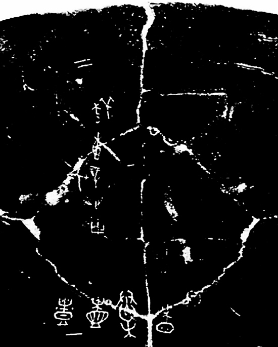 甲骨文拓片上的“朾樁鼘彭”(从右往左)。 受访者供图