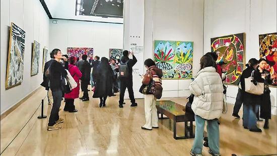 中国美术馆“海上的乡土世界”舟山渔民画展现场。 受访者供图