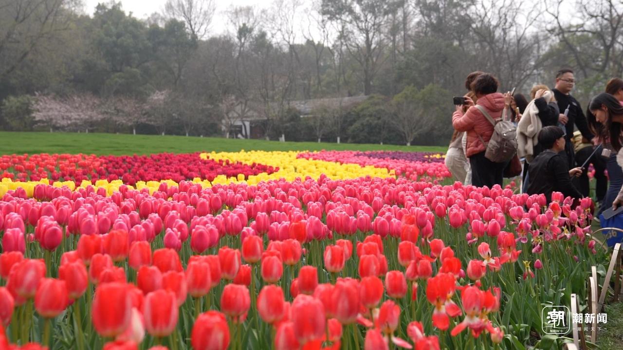 西湖风景名胜区凤凰山管理处太子湾中心工作人员何懿航介绍,这片区域主要用来向市民游客进行科普展示,百余种郁金香集中展示,并都附带有写明品种外文名和中文名的小牌子。