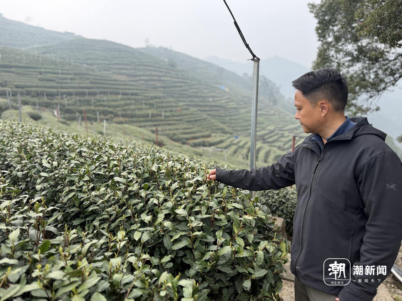 “茶叶看天。”翁政指着山上的茶树说,天气对茶树生长影响大,茶农要勤上山观测茶芽长势,“比如今天茶芽1.5厘米了,那么多久后要叫采茶工过来,这需要茶农根据长势和经验来判断。”