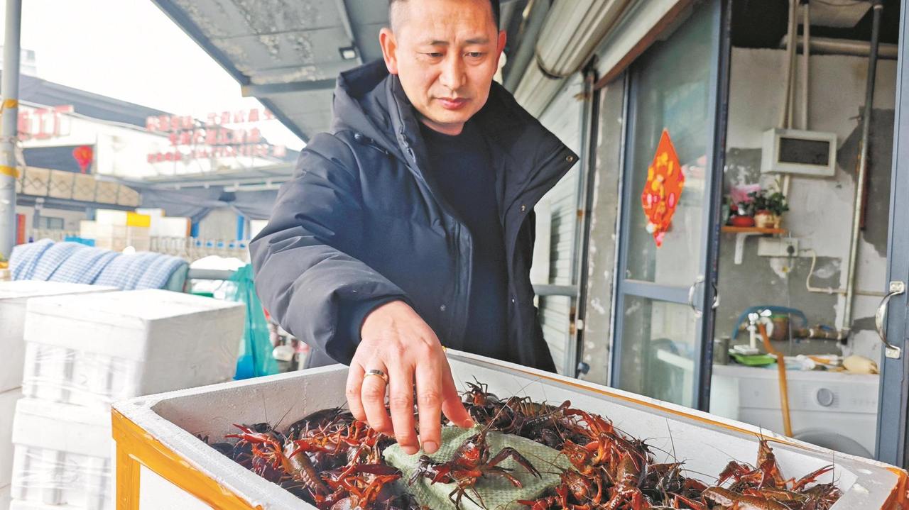 “主要来自湖北潜江,那边是老产区,肉质好。”黄德超一边说,一边随手从筐里抓起一只小龙虾给记者看,“像这种青壳、肚子白、小钳子的,捏着有弹性的,肉就饱满。”
