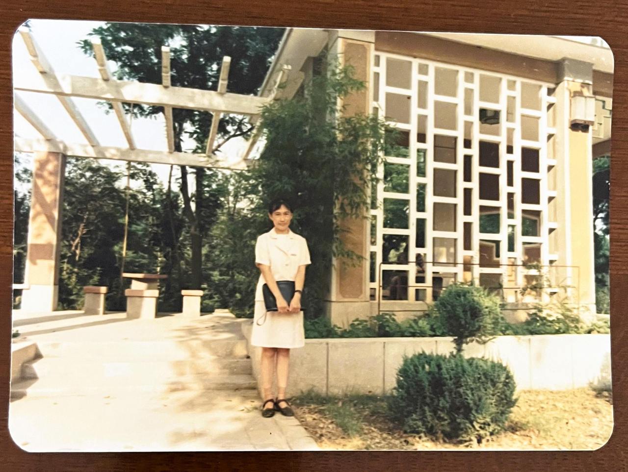 1984年,华玉在大连工学院校园内拍的硕士研究生毕业照。受访者供图