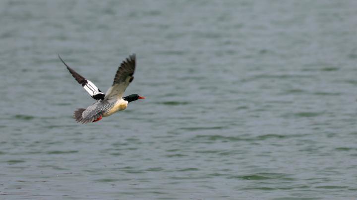 3月24日,记者在钱塘江之江大桥附近,拍摄到一只中华秋沙鸭栖憩觅食的场景。从现场一位观鸟爱好者了解到,这只秋沙鸭出现在此处已有一周左右时间,应该是迁徙途中在这里休息调整,停留的时间不会太长。