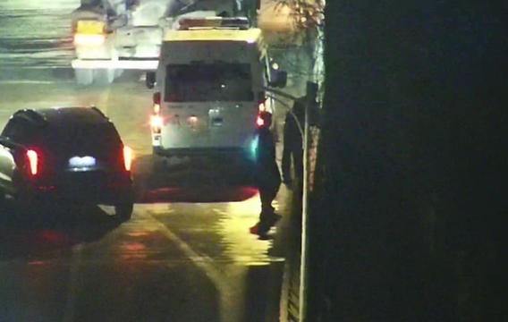 二人对话交流时,辅警庞卫忠悄然从侧后方慢慢向女子靠近,寻找最佳救援时机。