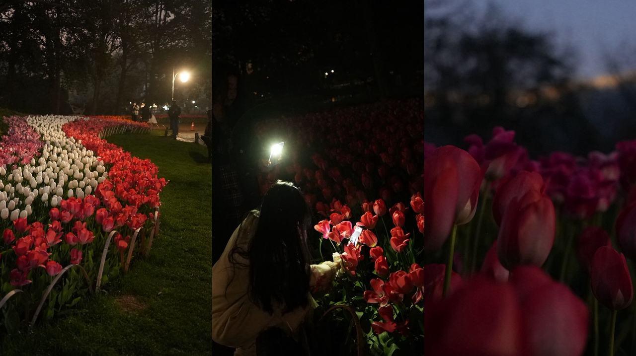 入夜时分,太子湾公园展现出与白天截然不同的静谧之美。正值郁金香盛开,白天的公园预约爆满、人山人海,而夜晚则褪去喧嚣,归于宁静。