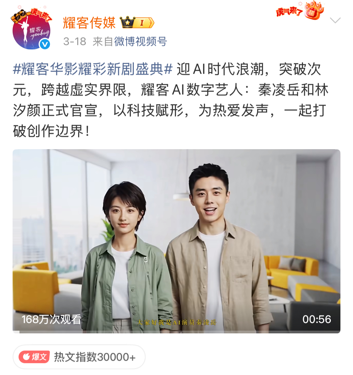 耀客传媒官宣两位AI数字艺人。社交媒体截图