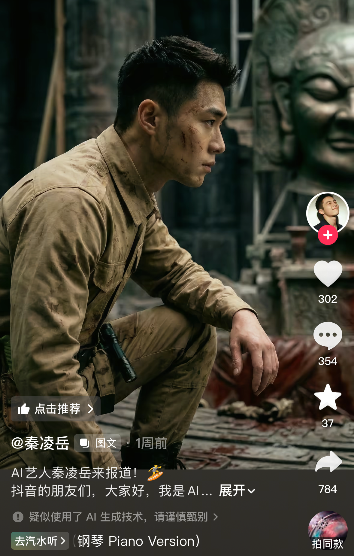 AI艺人“秦凌岳”的个人账号。社交媒体截图