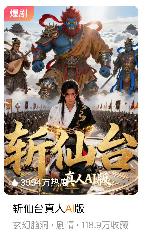 其实,AI演员并非凭空出道,此前,已有大批AI短剧进入市场。2025年2月,国内首批AI真人短剧代表作《兴安岭诡事》上线,不到21小时播放量破千万;2025年12月,《斩仙台AI真人版》上线两天登顶红果漫剧热播榜,六天播放量破亿……