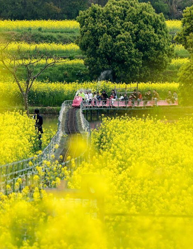 花海列车穿行处 义乌千亩油菜花海绘就田园新景