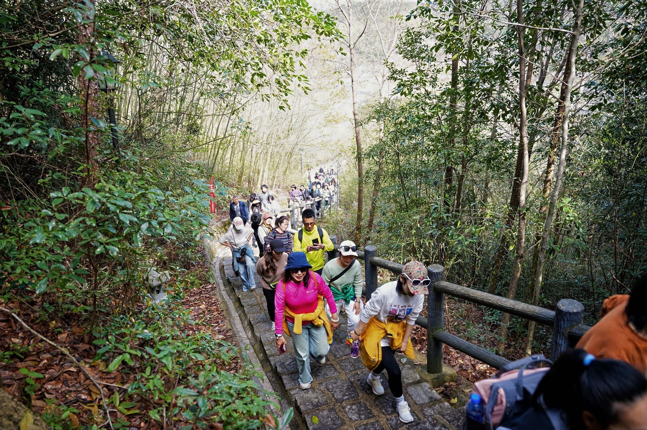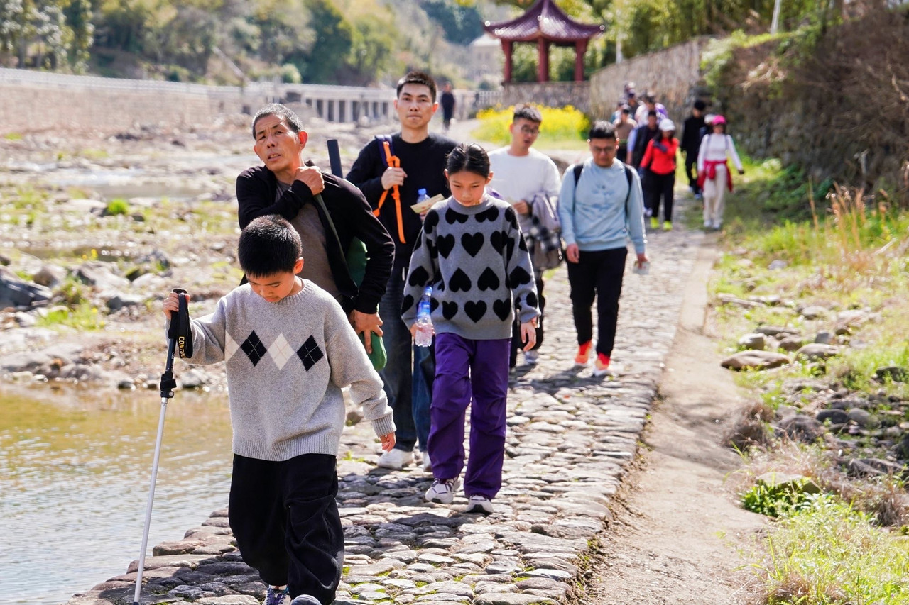 3月28日,“马踏春山·趣行石笋”徒步寻宝活动在上虞陈溪石笋山举行。吸引200余名户外爱好者及亲子家庭参与。 5.5公里环线串联自然风光、红色教育点与文创场馆,融入登山寻宝、红色知识问答、打卡互动。活动搭配乐队演出、趣味游戏,带动乡村餐饮和农产品销售。 此次活动融合健身、文旅、红色文化与促消费,展现陈溪春日美景,激活乡村消费,为乡村文旅发展增添新动能。