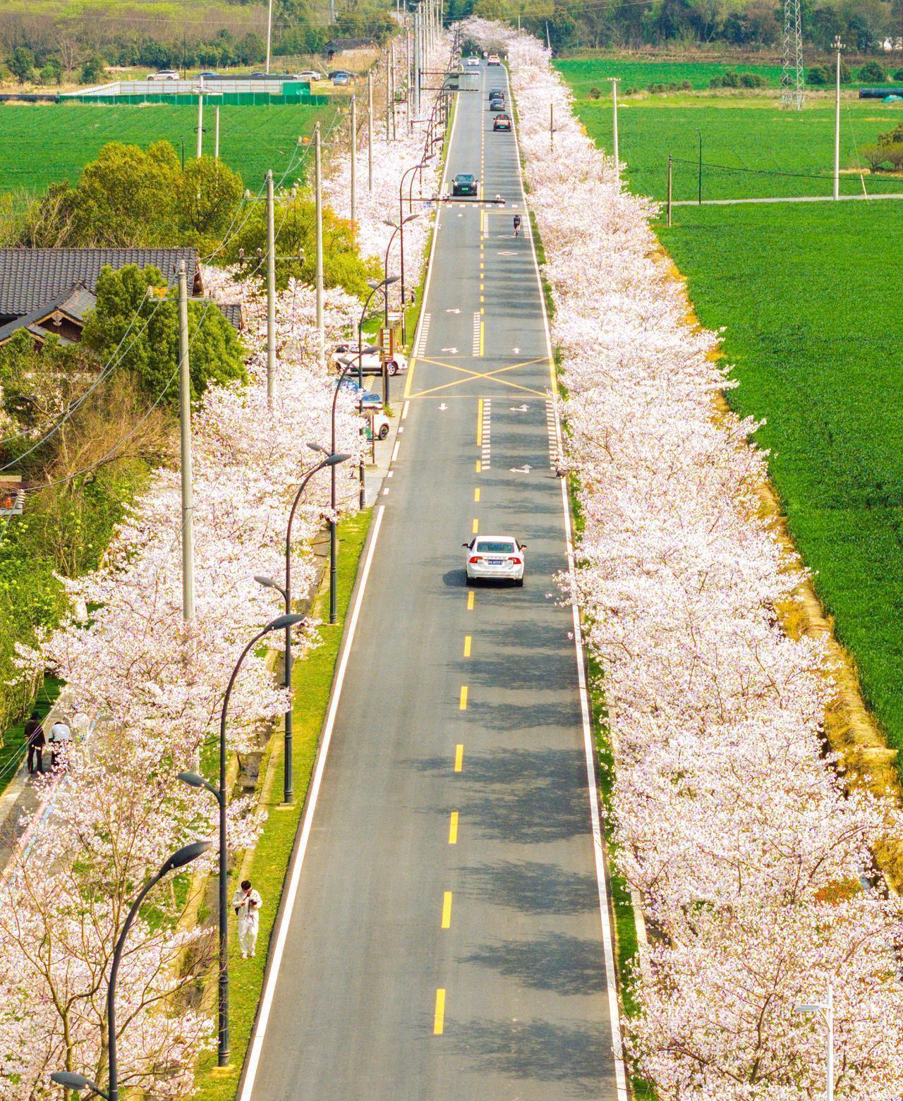 阳春三月,春和景明,杭州余杭西部最美樱花大道——漕雅线沿线樱花次第绽放,绵延成2公里浪漫廊道。 余杭区交通运输局推行“公路养护+樱花养护”双轮驱动,完成沿线病害路面修复、标识标牌整改等优化提升,同时新植染井吉野樱花600余株,并加强修枝、病虫害防治及水肥管理,实现樱花景观与公路通行品质双提升。整洁公路与浪漫樱花相映,呈现“车在路上行,人在景中游”的诗意画卷。 与此同时,杭徽入城口的官山公园内,100余种、1503株樱花也进入盛放期,粉白花海沿山势铺展,为周边居民送上春日里的生态温情。
