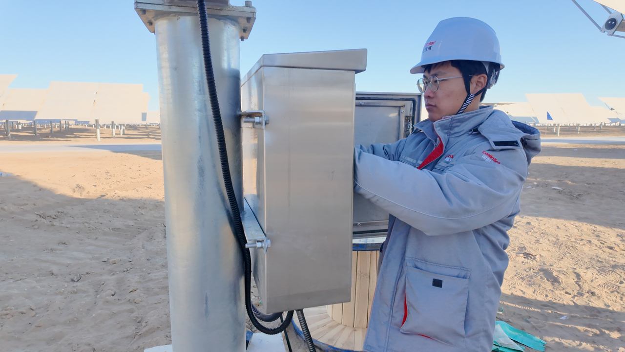 记者抵达时,现场负责人周发源已经在门口等候。他穿着深蓝色的工装,安全帽下的脸庞带着戈壁风沙磨砺出的痕迹。很难想象,这位在光热行业摸爬滚打了十年多的技术骨干,是一名1993年出生的年轻人。