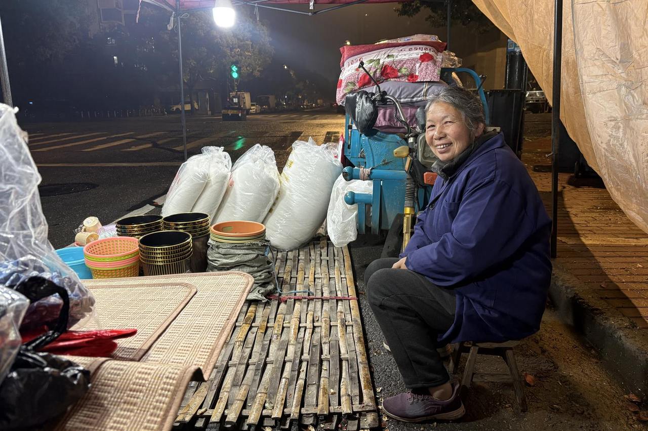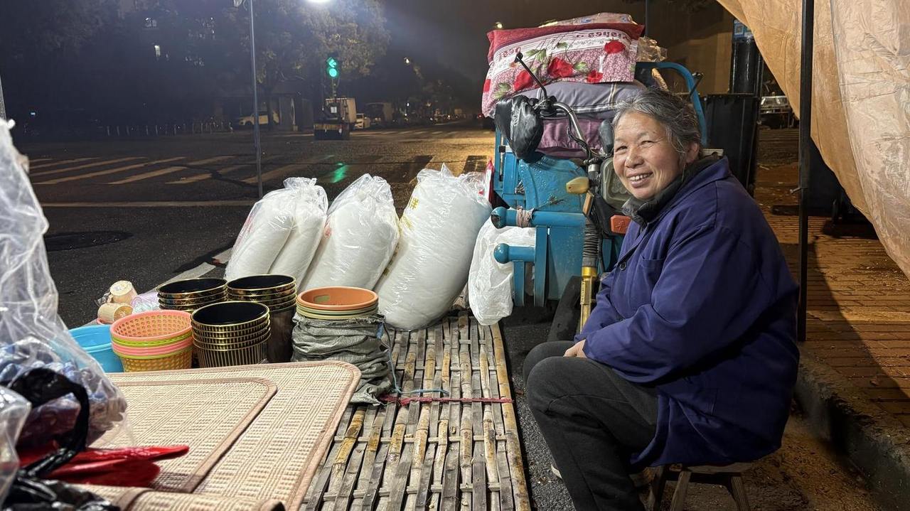 夏天卖凉席,冬天卖棉被芯,搭配一些小生活物品。每天下午3点,她就从章安家里出发,半小时的路程,到椒江东升街的夜市来,晚上12点左右才收摊回家。