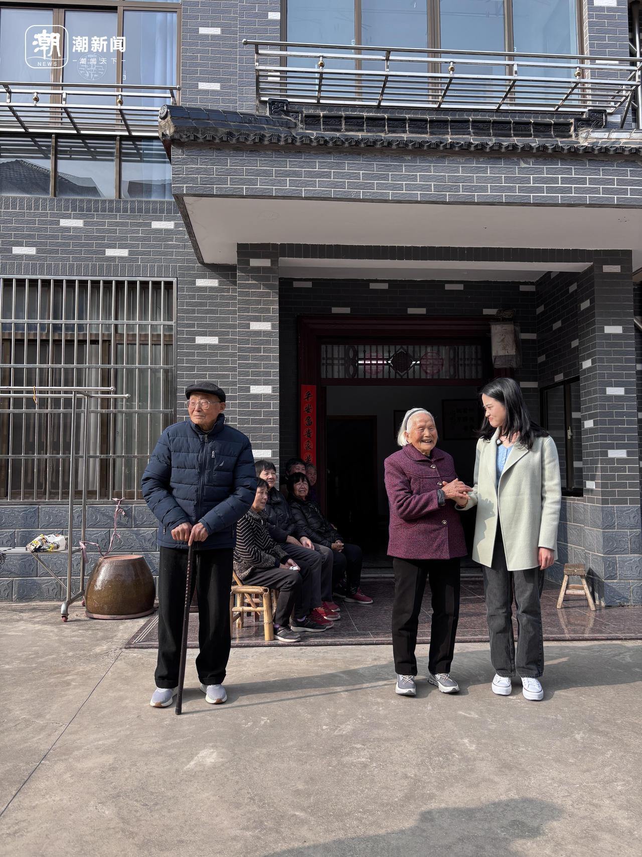 中堂的八仙桌上,爷爷、奶奶按照当地习俗,为孙女准备了尺糕等家乡小食。“我现在在爷爷、奶奶家,他们特地给我准备了尺糕,上面还有我的名字!”溪瑞不忘拿出手机记录下这温情瞬间。尺糕上,“幸福好运 平湖广陈”几个大字,包围着“Sherry”。左邻右舍的乡亲也赶来欢迎朱家“二宝”,溪瑞忙拿出尺糕和大家分享。