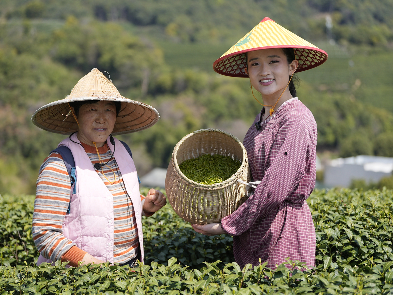 朱溪瑞在杭州体验采茶。 浙江省国际传播中心供图