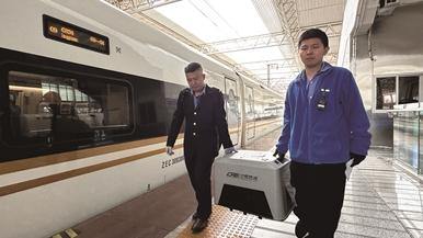 当天下午4点多,“吐司”和主人婷婷一起抵达了济南西站。婷婷告诉记者,这趟托运的费用为460元,虽然快赶上她的高铁票了,但她愿意为这样的服务买单。“整个过程还是比较流畅顺利的,带它一起出行,我也觉得更有意义。”婷婷说。