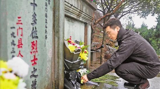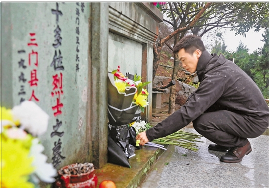 4月3日,细雨如丝,台州市三门县浦坝港镇方山烈士陵园的石阶上,51岁的陈小平带着19岁的儿子陈明辉和自发前来的护陵志愿者,又一次踏上了这条走了30多年的山路。