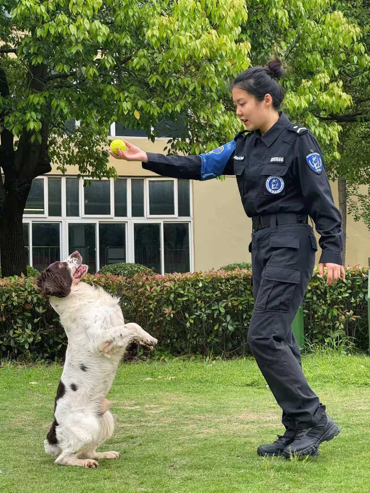 “我自己就养了两条犬、三只猫,对小动物感情很深。”她的第一条警犬叫“灵犀”,现年14岁,是杭州地铁公安的“功勋犬”,也是全国优秀人民警察、杭州地铁公安分局特警大队教导员崔震的拍档。