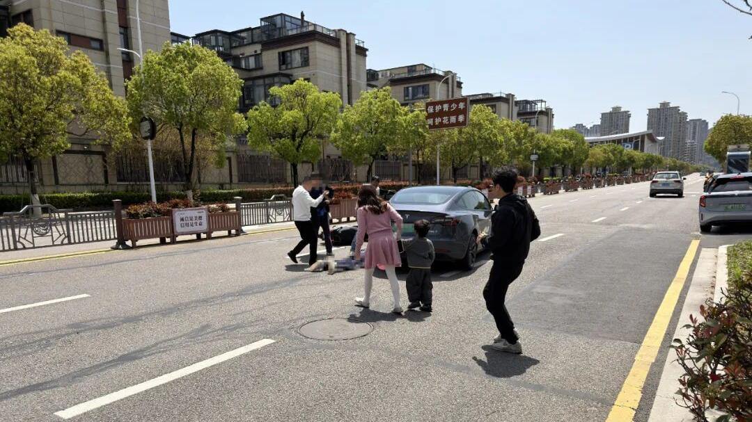 “孩子被压住了,快抬车!”围观的好心路人喊出了这句话,立即引来更多路人前来帮忙抬车。姜先生说,有路过的司机,有刚从饭馆出来的食客,有骑电瓶车的市民,甚至还有几位刚从酒店出来的游客。没有指挥,没有动员,十几个人自发地围住了那辆特斯拉。没有犹豫,没有等待,所有人直奔车后方。