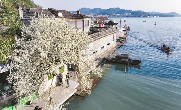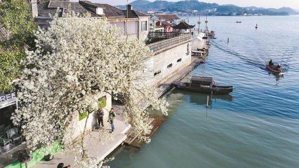 这棵斜长于湖畔的梨花树,原是村民郑才康为补贴家用买回的一棵普通树苗。近几年,它不经意间在各社交平台出圈,成了互联网上东钱湖春日的高频词之一。