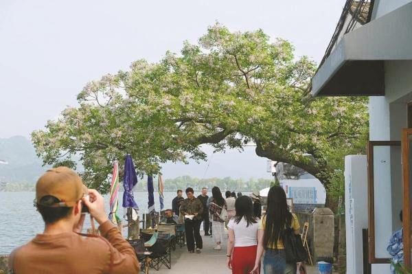 湖畔其他草木也蓄势待发。浅夏时节,利民村的楝树、宁波国际会议中心的荷花;秋日,环湖南路的银杏林……钱湖的“花事”,正从“春日限定”走向“四季常青”。