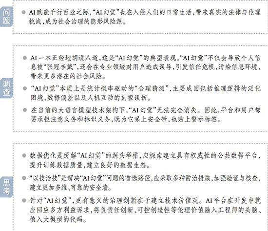 正如多位受访专家所说,驾驭AI的关键,不是让AI“无所不能”,而是让人类更有判断力。唯有持续强化技术研发、健全规范体系、完善校验机制,方能遏制幻觉风险,推动科技向善。