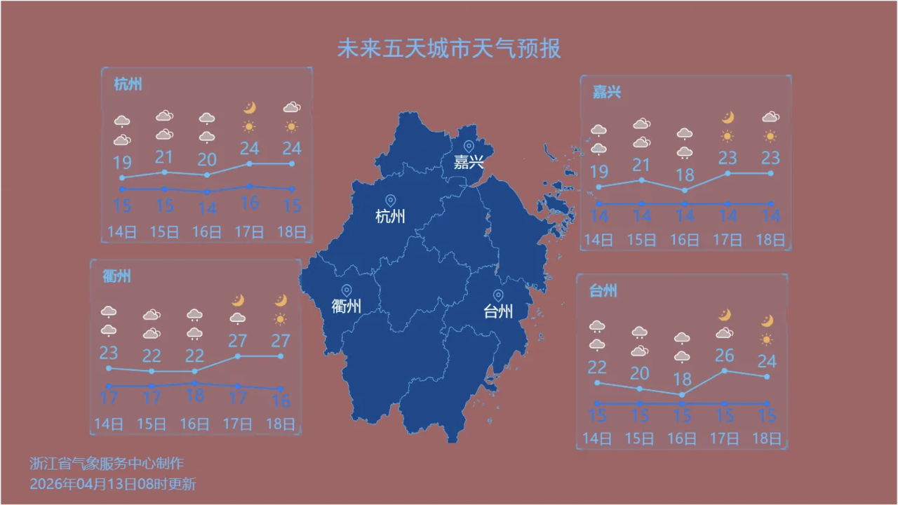 昨天(4月13日),雨水继续在浙中南地区发威,部分地区有中到大雨,个别暴雨;浙北地区雨水虽是配角,却也难见阳光,时阴时雨,倒勾勒出一幅活脱脱的江南水墨画。